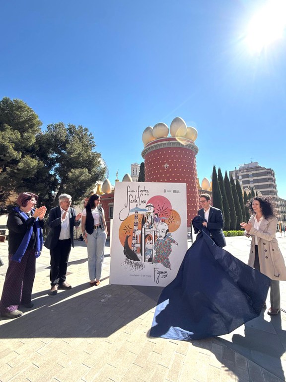 Aquest dimecres, a les icòniques lletres de Figueres davant la Torre Galatea del Teatre-Museu Dalí, s’ha presentat el cartell de les Fires i Festes de la Santa Creu 2026, creat per la dissenyadora gràfica i artista figuerenca, Clàudia Cobos Caballero. La cerimònia ha comptat amb les intervencions de l’alcalde, Jordi Masquef, i del tinent d’alcalde i regidor de Cultura Popular, Josep Maria Bernils, entre d’altres. Les festes, que se celebraran del 24 d’abril al 3 de maig, han estat destacades com una ocasió per celebrar la tradició i la identitat de la ciutat.